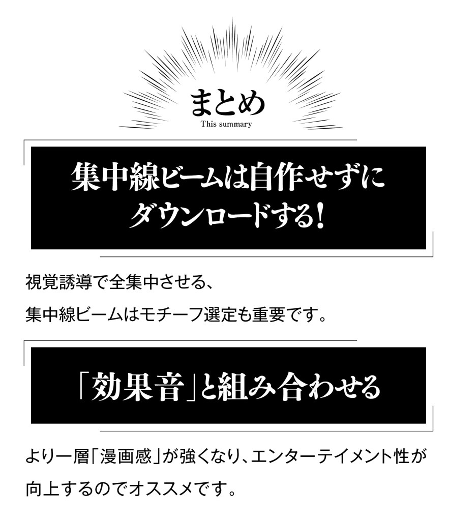 集中線はフリー素材で、ダウンロードできるので、自作する必要もありません。