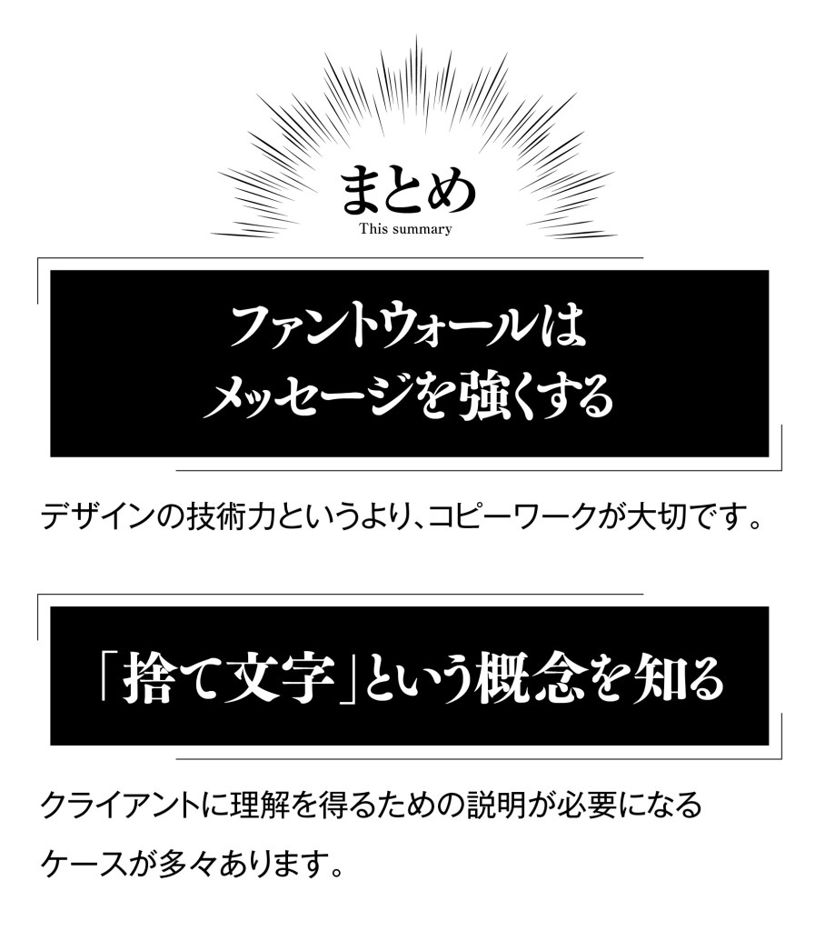 基本的に何とでも組み合わせることができる集中線ビームですが、組み合わせるモチーフによって全く異なった印象を与えることができます。また、どーん!、ドドドド!、シャキーン!など『効果音』の文字デザインと組み合わせることもオススメしています。